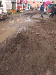 ويعاني المواطنون مع نزول قطرات الغيث من انتشار الأوحال على امتداد السوق مما يجعل التنقل في أرجائه صعباً بل يستحيل المرور من بعض الأماكن نظراً لتواجد كميات كبيرة من الأوحال تعيق تحرك الأشخاص إضافة إلى وجود البرك المائية في أكثر من نقطة، مما يضفي على السوق أقبح منظر وكأننا ما زلنا نعيش في القرون الوسطى.