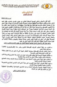 وعليه يعلن الفرع المحلي بآسفي للجمعية الوطنية للدفاع عن حقوق الإنسان بالمغرب ما يلي