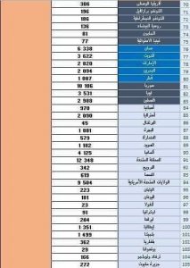 وفيما يلي لائحة عدد الحجاج المسموح بهم من كل دولة: