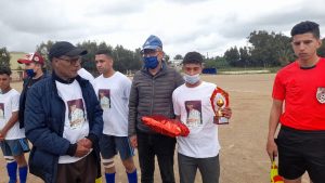 حيث قام السيد بوعزة ريكاط رئيس الجماعة المهارزة الساحل، بتقديم درع تكريمي لإبن المرحوم وشكر كل من قام على هذه اللفتة الجميلة والتي تنم عن مدى الوفاء بين الرياضيين وان الرياضة تجمع ولا تفرق، حيث تخلل حفل التابين مباراة تكريمية للمرحوم وكانت المباراة بين فريق تبات البئر الجديد وفريق أمجاد الحي الحسني.